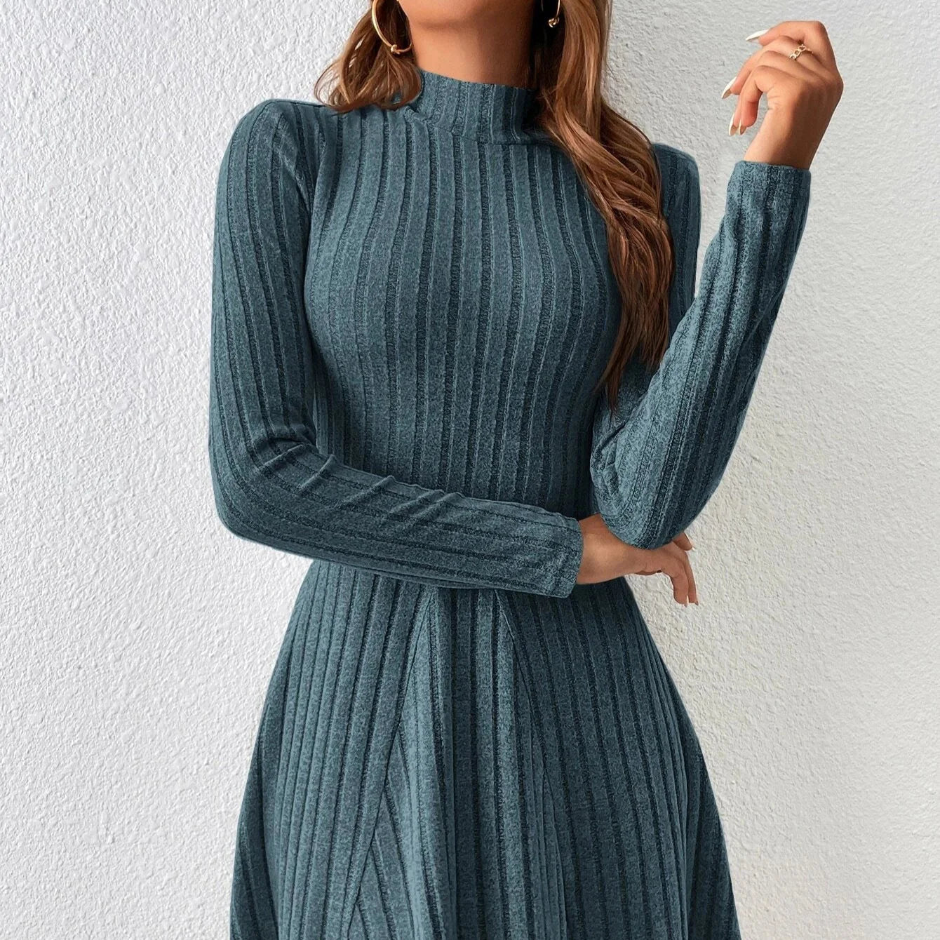 Vaelora | Women’s Ribbed Long Sleeve Fit and Flare Mini Dress